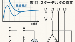 つぶやき なぜモータはスターデルタで動かすのか?デルタ始動との違いと電流・効率の関係 工場設備やポンプでよく使われる三相誘導モータ。その始動方式として「スターデルタ始動(Y-Δ)」があります。この記事では、なぜスターデルタ方式が今でも使われているのか、電流・トルクの数式を交えて整理します。1. 三相誘導モータの始動問題誘導モ... 2025.10.07 つぶやき
